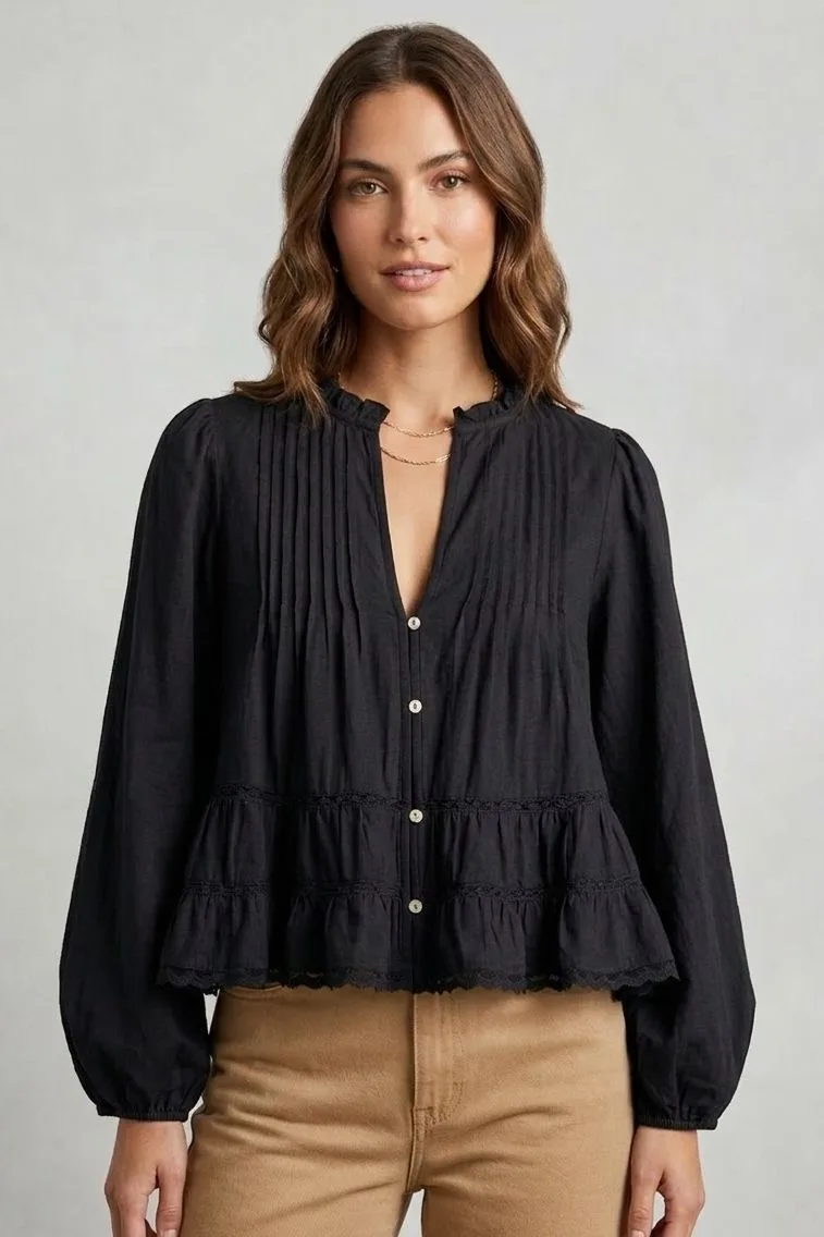 62202 Blusa Alforzas Puntilla