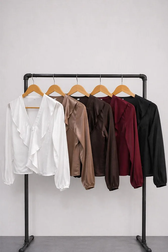 62110 Camisa Escote V Volados Cartera